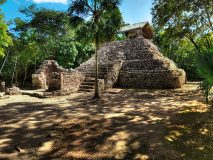 - By 10:45 am we shold be arriving to the archeological site of Cobá where we will take a two-hour guieded tour of the mayor archeological monuments such at the Nohoch Mul group, Church group, Ball game a group of paintings and more.